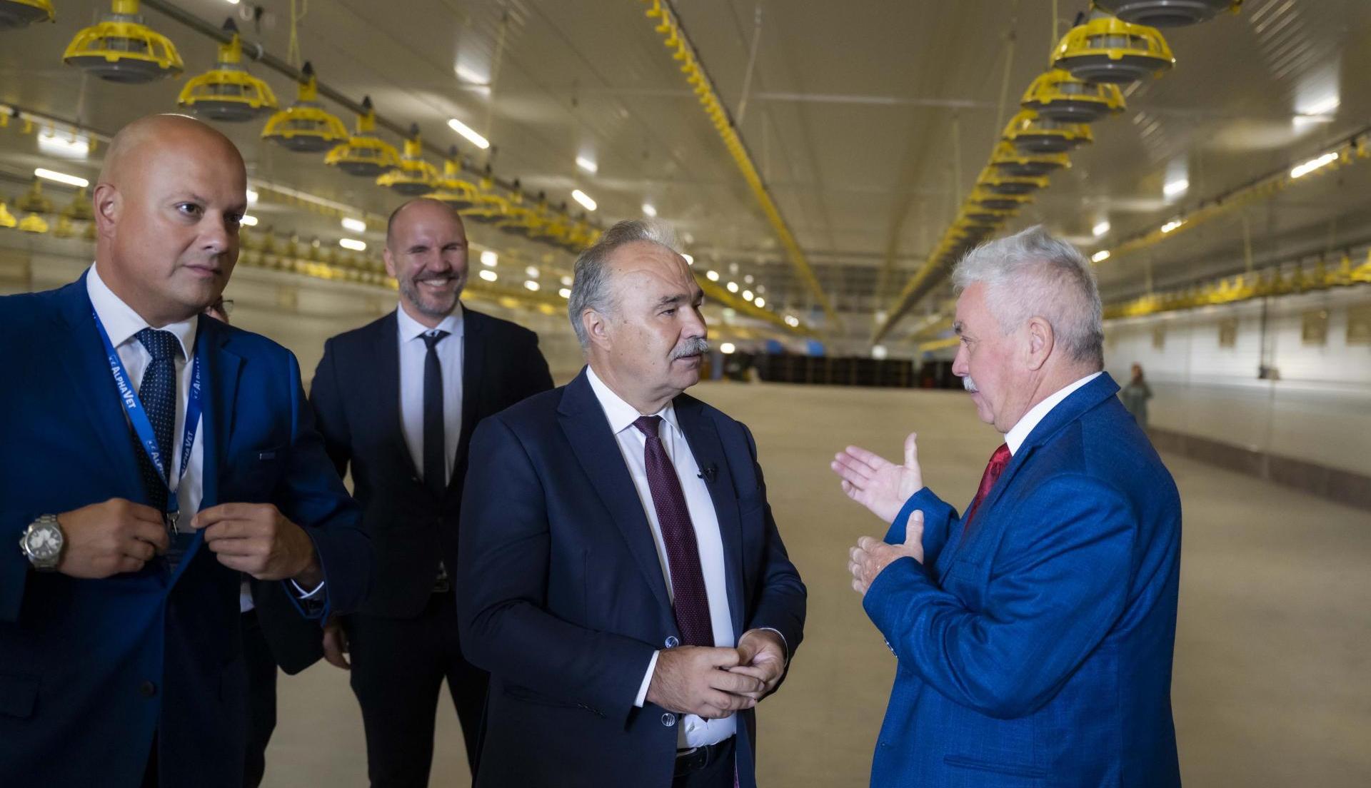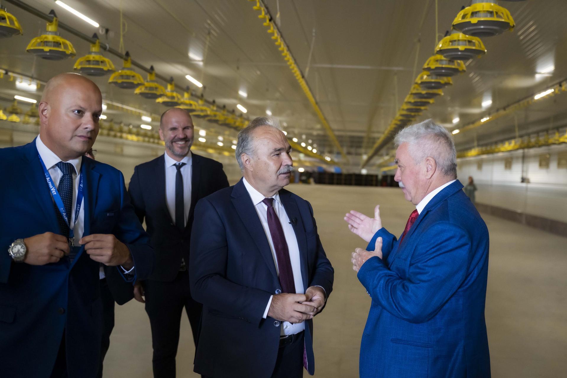 Mivel a versenyképesség megőrzéséhez korszerű, az európai uniós előírásoknak minden tekintetben megfelelő, magas technológiai színvonalú állattartó telepek szükségesek, 2015 óta számos telephelyfejlesztést célzó felhívás kínált támogatási lehetőséget a Vidékfejlesztési Programban, 9 ilyen felhívás keretében augusztus végéig több mint 3300 beruházásra 382 milliárd forintnyi támogatást fizettek ki - jegyezte meg. Nagy István emlékeztetett rá, hogy az Állattartó telepek fejlesztésének támogatása című, 2020-as pályázati felhívás lehetőséget biztosított gépbeszerzésre, energetikai korszerűsítésre, akár új állattartó telepek komplex kialakítására is. A felhívásra - minden állatfajt figyelembe véve - 1352 kérelmet nyújtottak be, ebből 627 kapott 352 milliárd forint támogatást. A nyertes pályázatok közül 145 a baromfitartó telepek fejlesztésére irányult, részükre 138 milliárd forintot ítéltek meg, a telepkorszerűsítések magukba foglalták az állategészségügyhöz vagy a takarmányozáshoz kapcsolódó technológiák beszerzését, a telepi létesítmények építését, bővítését, emellett lehetőséget nyújtottak az energiafelhasználás csökkentésére, a megújuló energia felhasználására. Nagy István rámutatott, hogy a Vidékfejlesztési Program támogatásainak is köszönhetően európai összevetésben is dinamikusan bővült a magyarországi állattenyésztés teljesítménye. Magyarország a legfrissebb uniós adatok alapján a tagállamok közül tavaly a sertés- és baromfivágás-számot tekintve az ötödik, a tejfelvásárlás esetében a második legmagasabb növekedést produkálta, az élősúlyban számított vágások területén a baromfi esetében 6,1 százalékos növekedést ért el - mondta. Közölte, a Vidékfejlesztési Programot felváltó KAP Stratégiai Tervben is fenntartják az állattenyésztés, így a baromfiágazat kiemelt támogatását is. "Ezt a gazdák érzik és pályáznak is, a kisebb termelők szintén, hiszen számukra is 200 milliós plafonnal hirdettünk fejlesztésüket, ahogy a nagyobb gazdaságok számára is nyitott a lehetőség magasabb plafonnal" - fűzte hozzá. Nagy István a Doór-Baromfi Kft. új telephelyéről szólva beszámolt arról, hogy az 1 milliárd forint pályázati támogatást élvező beruházás 4, teljesen automatizált istálló építését foglalta magában, amelyek energiaszükségletét napelemes rendszer biztosítja. A korszerű technológiának köszönhetően a csibék egészségesebbek, a termelési mutatók kedvezőbbek lehetnek - mondta.