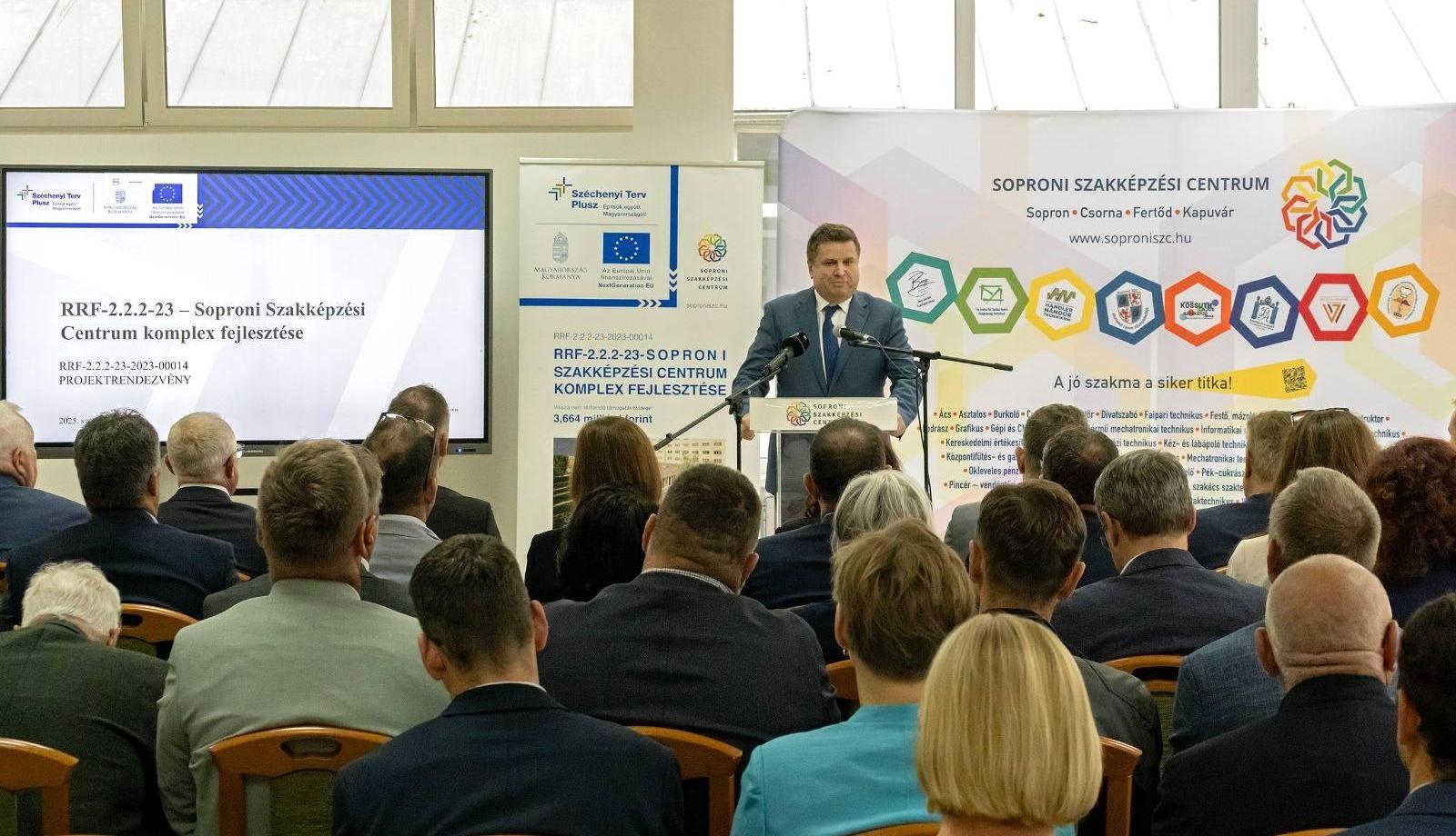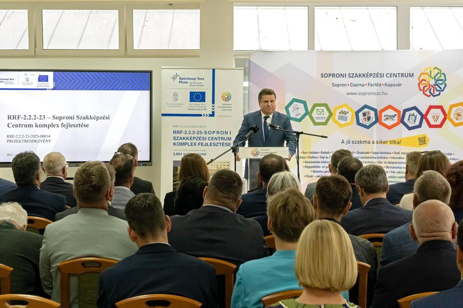 Nyul Zoltán, az Építési és Közlekedési Minisztérium magasépítésért felelős helyettes államtitkára a csütörtöki projektrendezvényen úgy fogalmazott: az infrastruktúra megújításával a minőségi oktatás kialakulását kívánják elősegíteni, annak az érzésnek a megerősítését a tanulókban, hogy "jó ide járni". Fontos, hogy a támogatás teljes összegét a lehető leghatékonyabban költsék el a teljes projekt megvalósítása során, a gazdaságossági szempontoknak is mindig érvényesülniük a beruházásoknál úgy, hogy az az intézmények hosszú távú üzemeltetését is javítsa - mondta. "Ha ennek a projektnek a beépülő elemeit megnézzük, a szigetelés és az energetikai fejlesztések, a későbbi működtetés mind a későbbi gazdaságosságát szolgálják" - mondta. Veress Ágnes, a Soproni Szakképzési Centrum kancellárja köszöntőjében hangsúlyozta: a megújult 21. századi színvonalú intézményekben igyekeznek tanulóikkal megszerettetni választott szakmájukat. Céljuk, hogy olyan ismeretekkel lássák el diákjaikat, amelyek felvértezik őket a jövő kihívásaira, szakmájuk szeretetére, de fontos számukra a tehetségek felismerése, gondozása, kibontakoztatása, sikereiket mutatják a szakmai versenyeken elért kimagasló eredményeik - hangoztatta. Barcza Attila, Sopron és térsége fideszes országgyűlési képviselője kiemelte: Sopron iskolaváros, amelynek lakói büszkék valamennyi oktatási intézményükre. A szakképző iskolák méltán népszerűek, hiszen azzal a piacképes tudással, amelyet tanulóik az intézmények falai között megszereznek, Sopronban és környékén, de akár a fővárosban is, vagy a határ túloldalán, a szomszédos Ausztriában is szinte azonnal el tudnak helyezkedni - mondta. A projekt során eddig megvalósult és részben most átadott fejlesztések a kollégium épületét, annak tanműhelyként is szolgáló konyháját és éttermét érintették, mintegy 570 négyzetméteren. Az ötvenéves épület új külsőt kapott, az energetikai felújítás során kicserélték a nyílászárókat, szigetelték a tetőt és az épület homlokzatát.