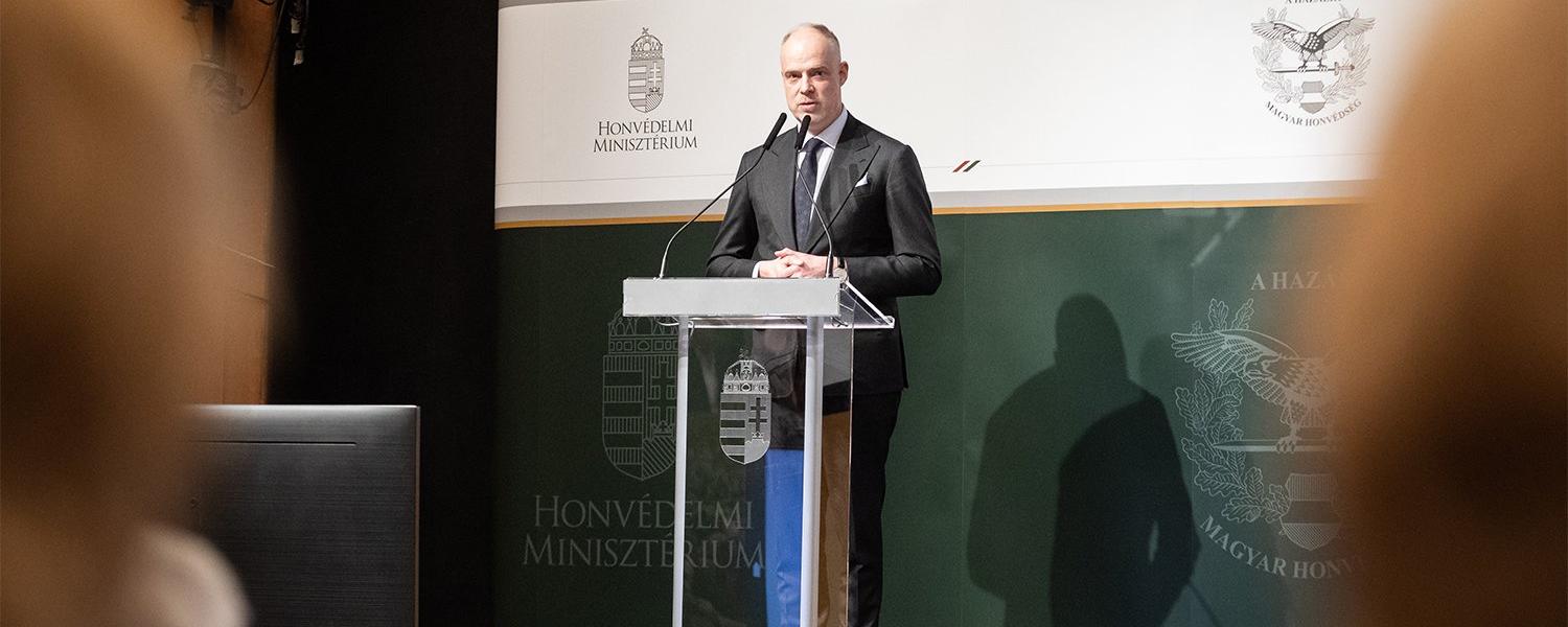 Előadásában a honvédelmi miniszter méltatta a nyugállományú honvédelmi dolgozók szolgálatát, részletes tájékoztatást adott azokról a prioritásokról, amelyek mentén honvédelmi miniszterként – a tárca tevékenységét koordinálva és a Honvéd Vezérkarral együttműködve – végzi munkáját, majd bemutatta, hogy miként illeszkedik a magyar modell a nemzetközi kontextusba. Az egy évvel ezelőtt kitört orosz-ukrán háború kapcsán az elhúzódó harcok veszélyeiről beszélt, hangsúlyozva, hogy az ukrán független állam elleni orosz agresszióból kinőtt konfliktus egy „20. századi típusú borzalmakat felsorakoztató, az első és második világháború katonai műveleteire emlékeztető, nagyszámú civil áldozattal járó és felbecsülhetetlen mértékű anyagi javakban megmutatkozó pusztulást okozó háborút” eredményezett. A tárcavezető arról is beszélt, hogy a háború kimenetele bizonytalan és magas az eszkaláció veszélye. „Ebben a háborúban Magyarország a béke pártján áll” – ismételte el a magyar kormány álláspontját.