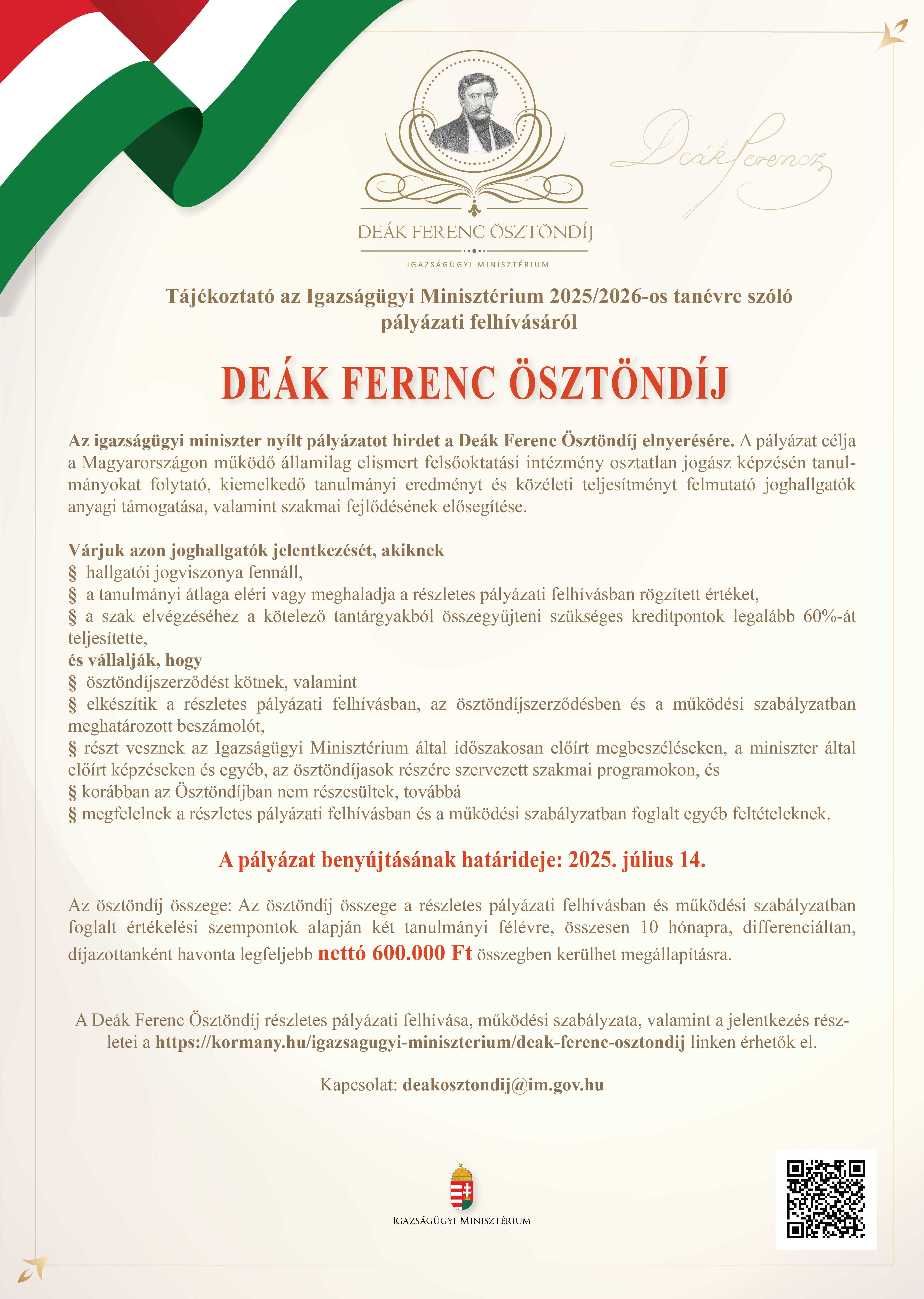 „Új nemzedék a jog útján - A 2024/2025. tanév Deák Ferenc ösztöndíjas hallgatóinak írásai” című tanulmánykötet