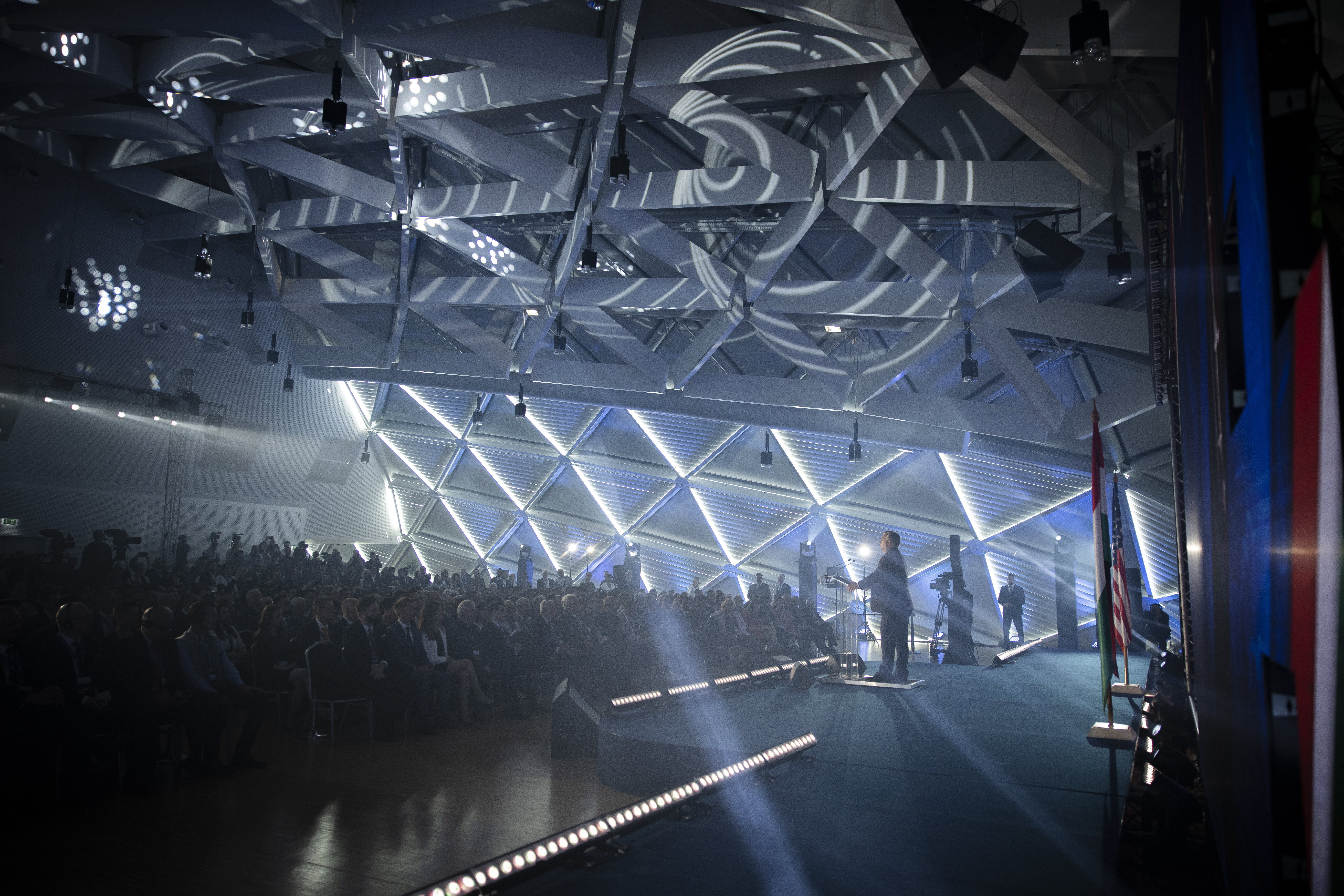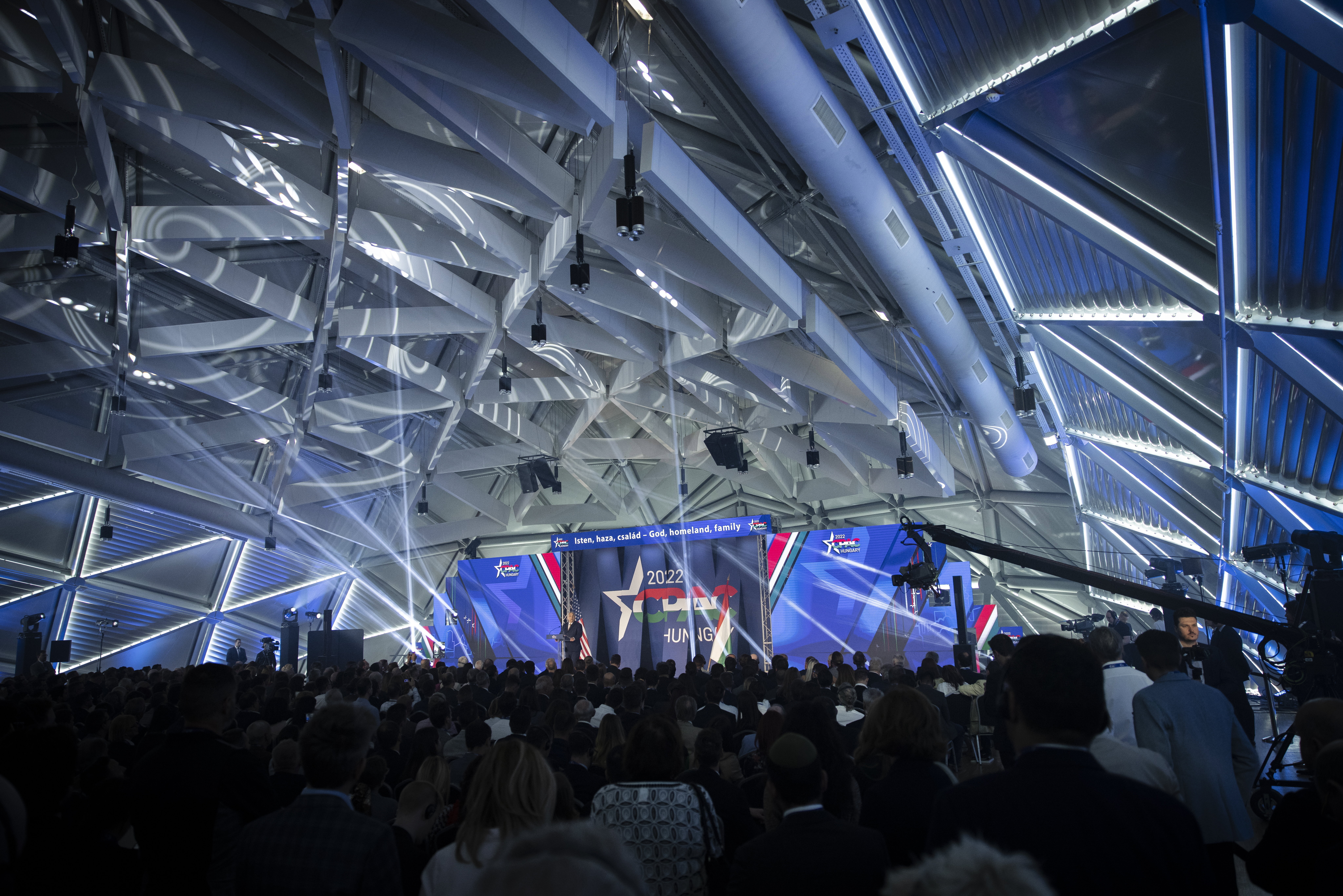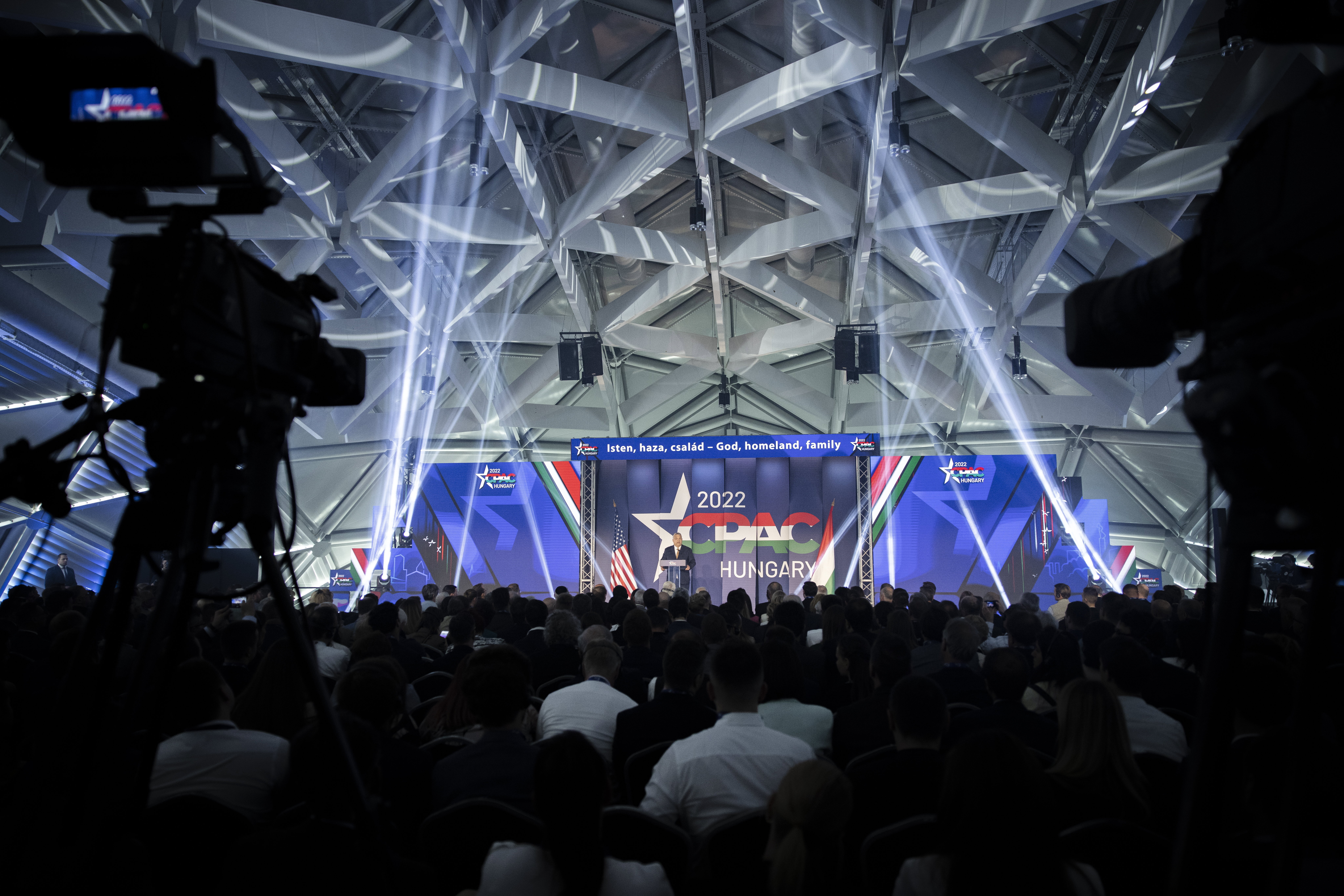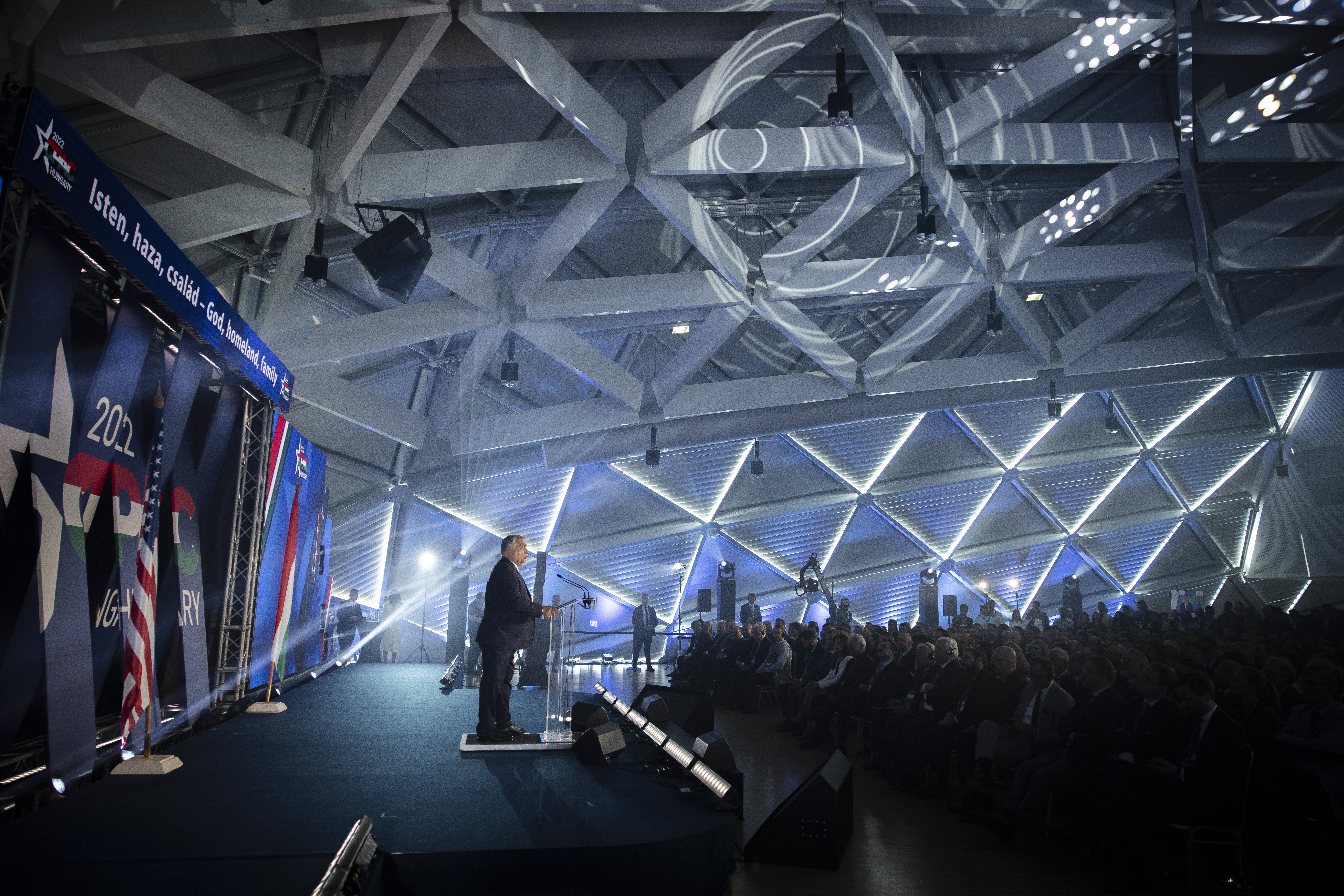 Orbán Viktor miniszterelnök, az esemény főszónoka a Conservative Political Action Conference (CPAC) Hungary elnevezésű, kétnapos konzervatív politikai fórum első napján a Bálna Budapestben 2022. május 19-én. Fotó: MTI/Miniszterelnöki Sajtóiroda/Fischer Zoltán