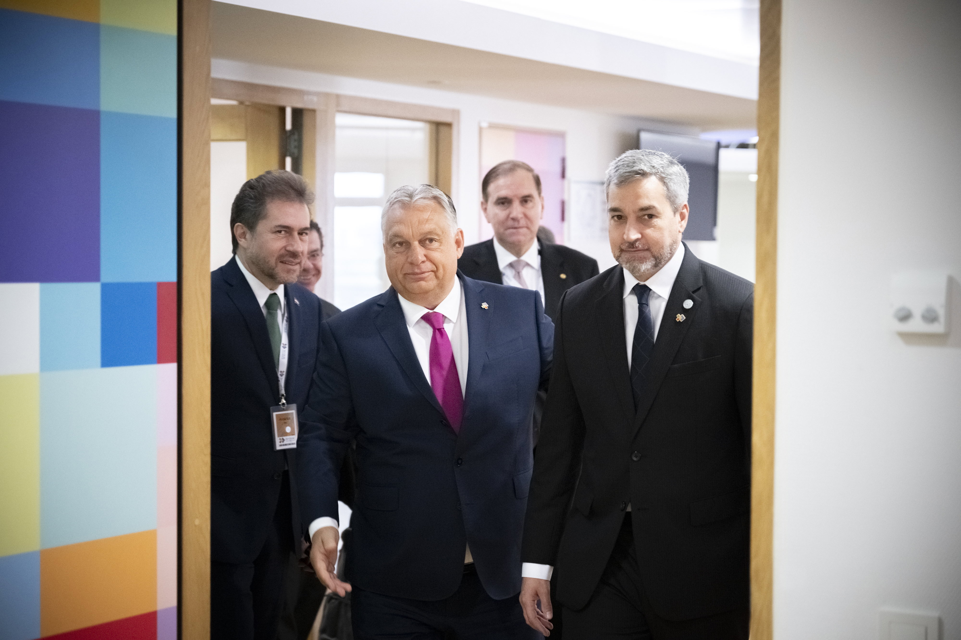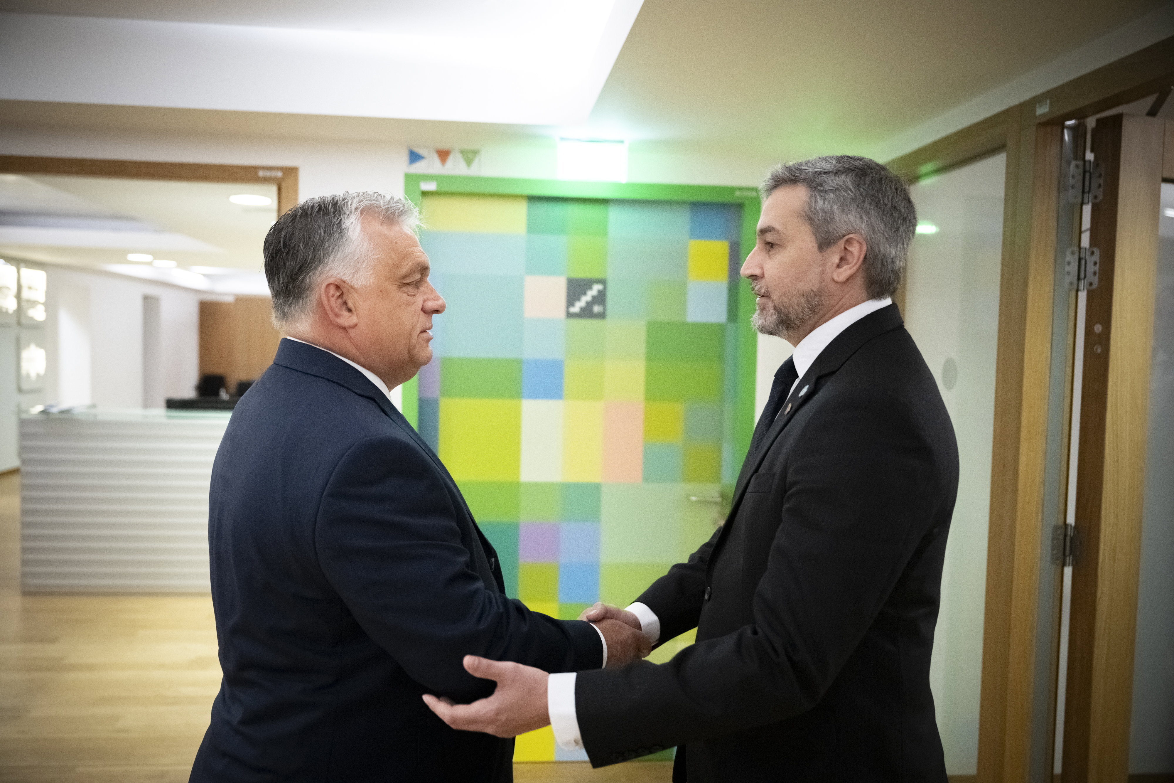 Orbán Viktor kormányfő és Mario Abdo Benítez, Paraguay elnöke tárgyalása Brüsszelben 2023. július 18-án. Fotó: MTI/Miniszterelnöki Sajtóiroda/Benko Vivien Cher