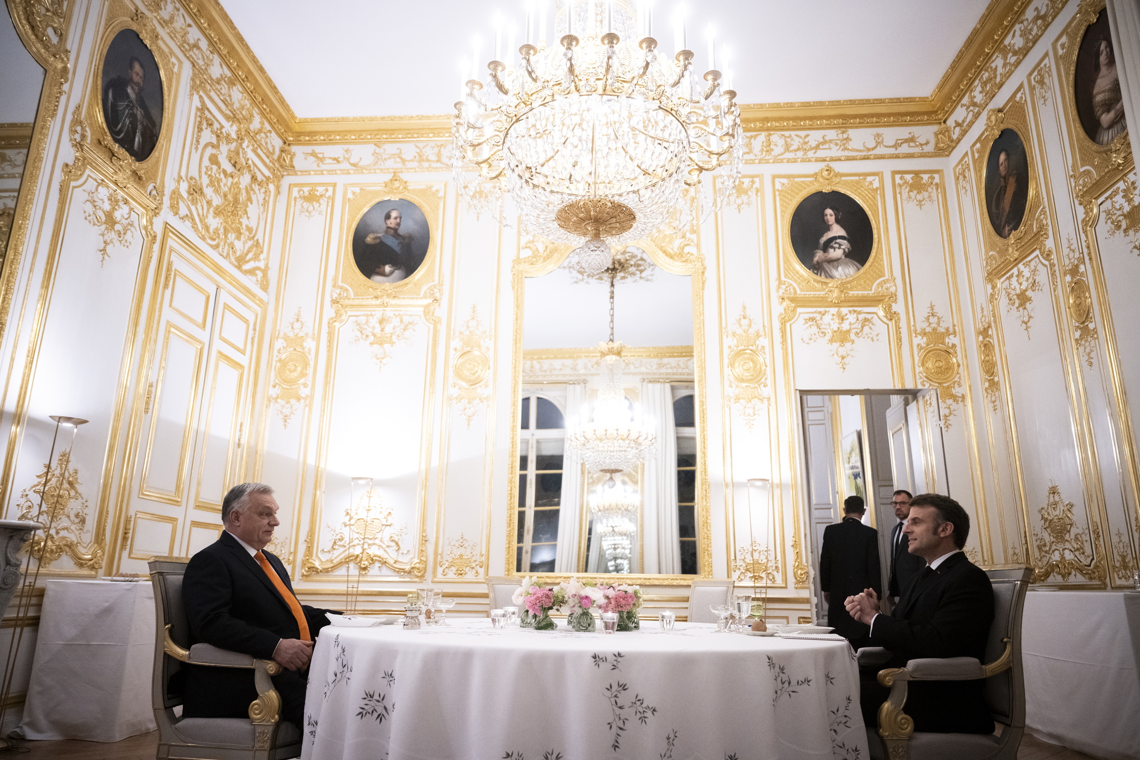 Orbán Viktor miniszterelnök és Emmanuel Macron francia elnök találkozója a párizsi államfői rezidencián, az Elysée-palotában 2025. március 5-én. Fotó: MTI