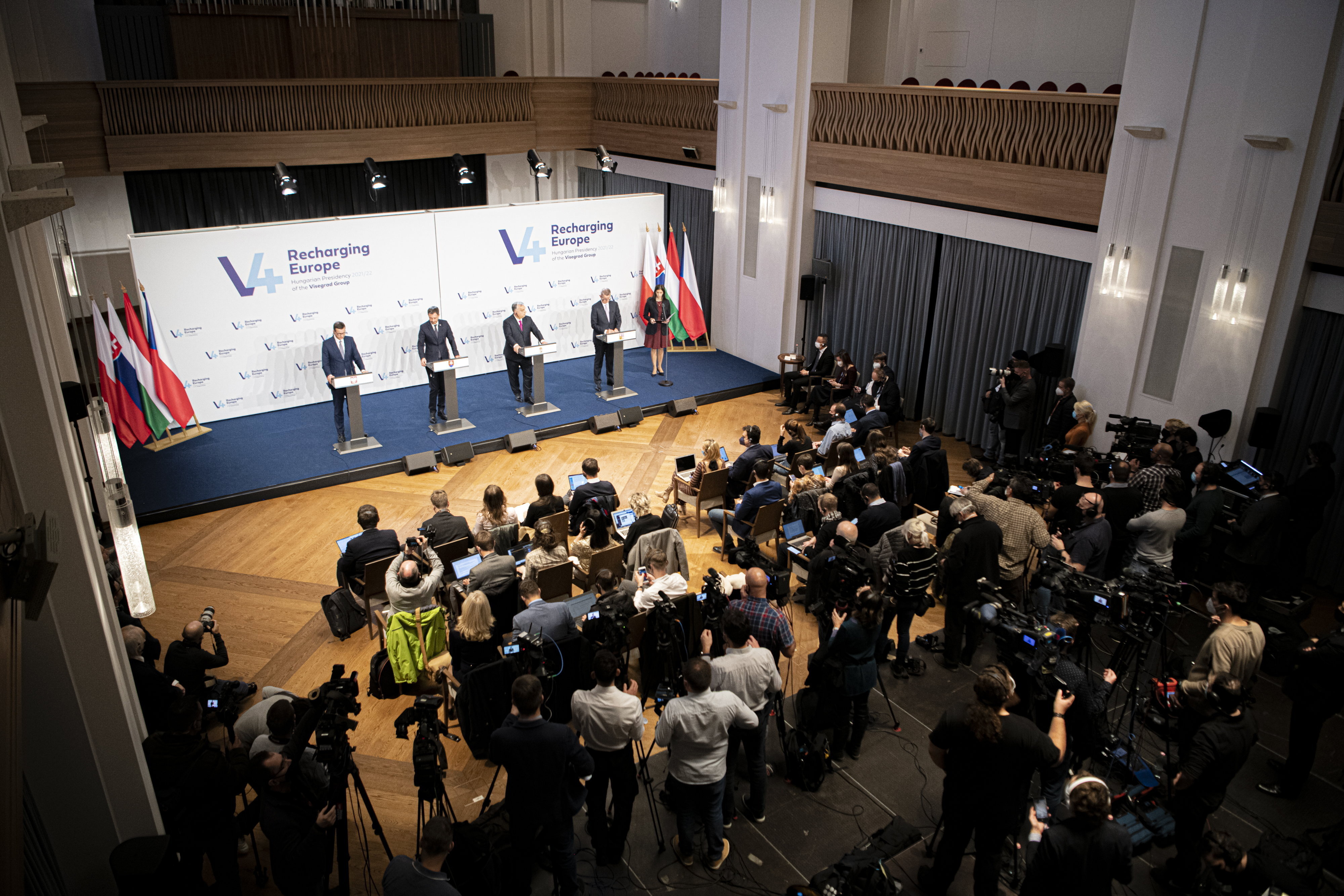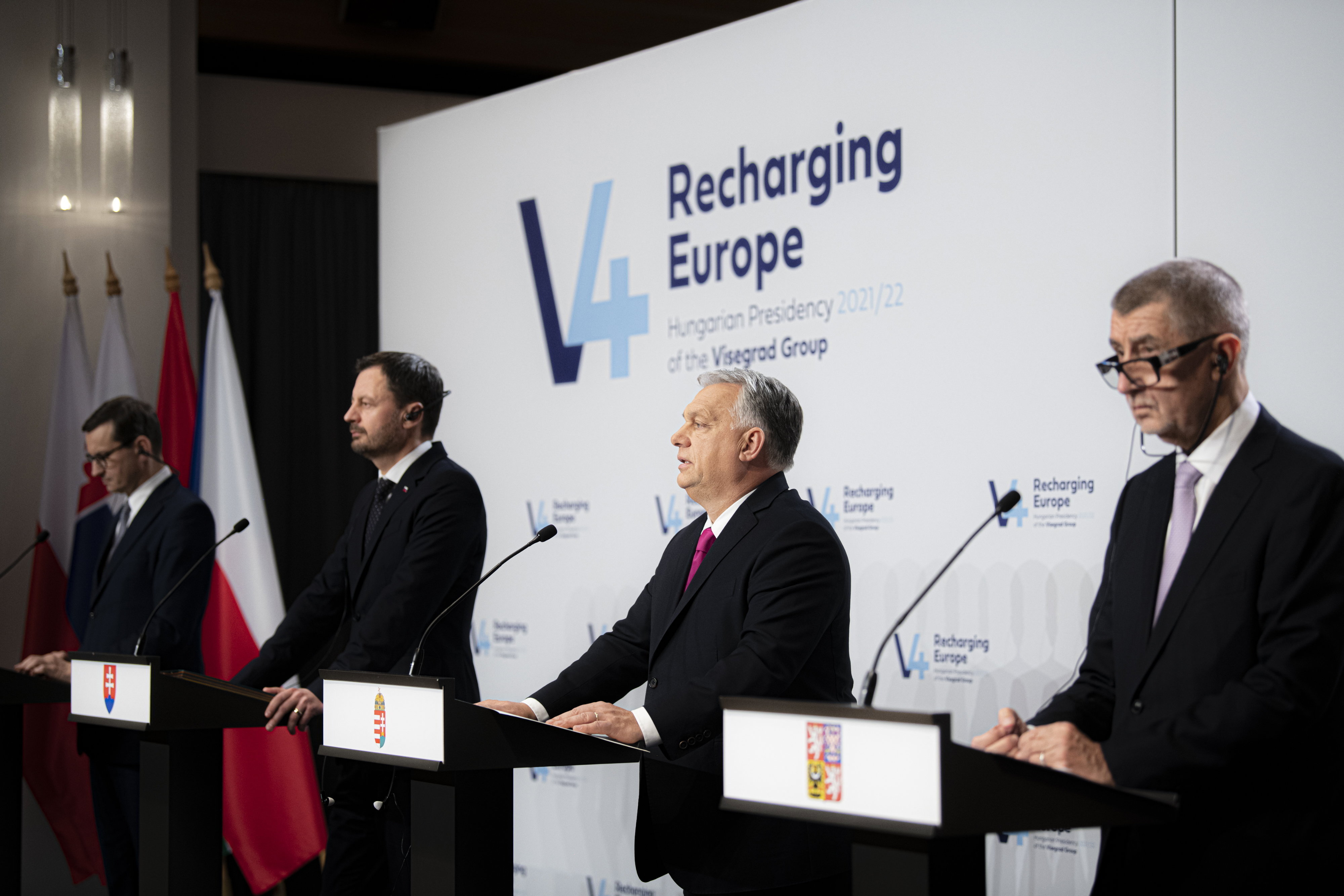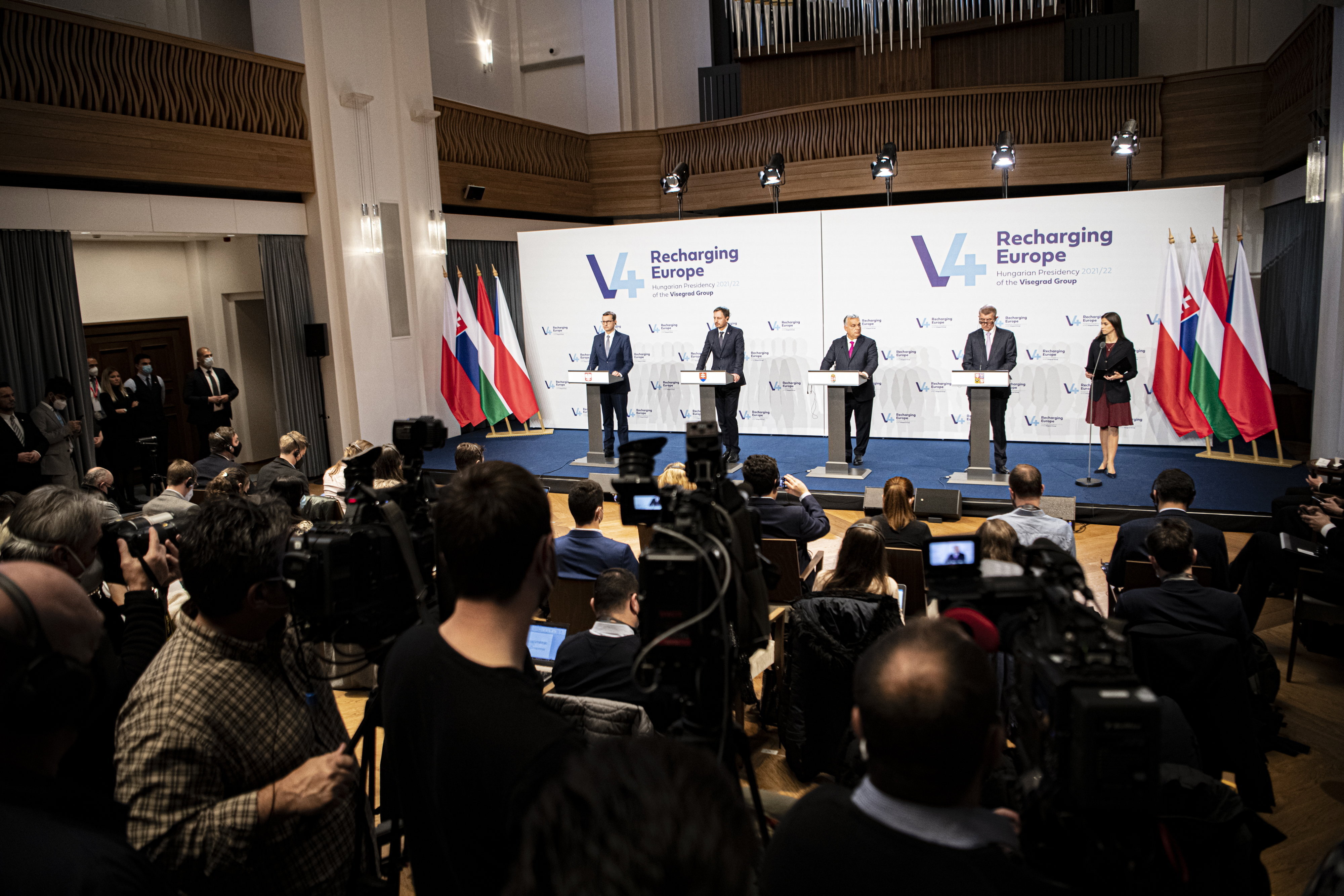 A visegrádi országok miniszterelnökeinek csúcstalálkozója Budapesten, a Karmelita kolostorban 2021. november 23-án. Fotó: Miniszterelnöki Sajtóiroda/Benko Vivien