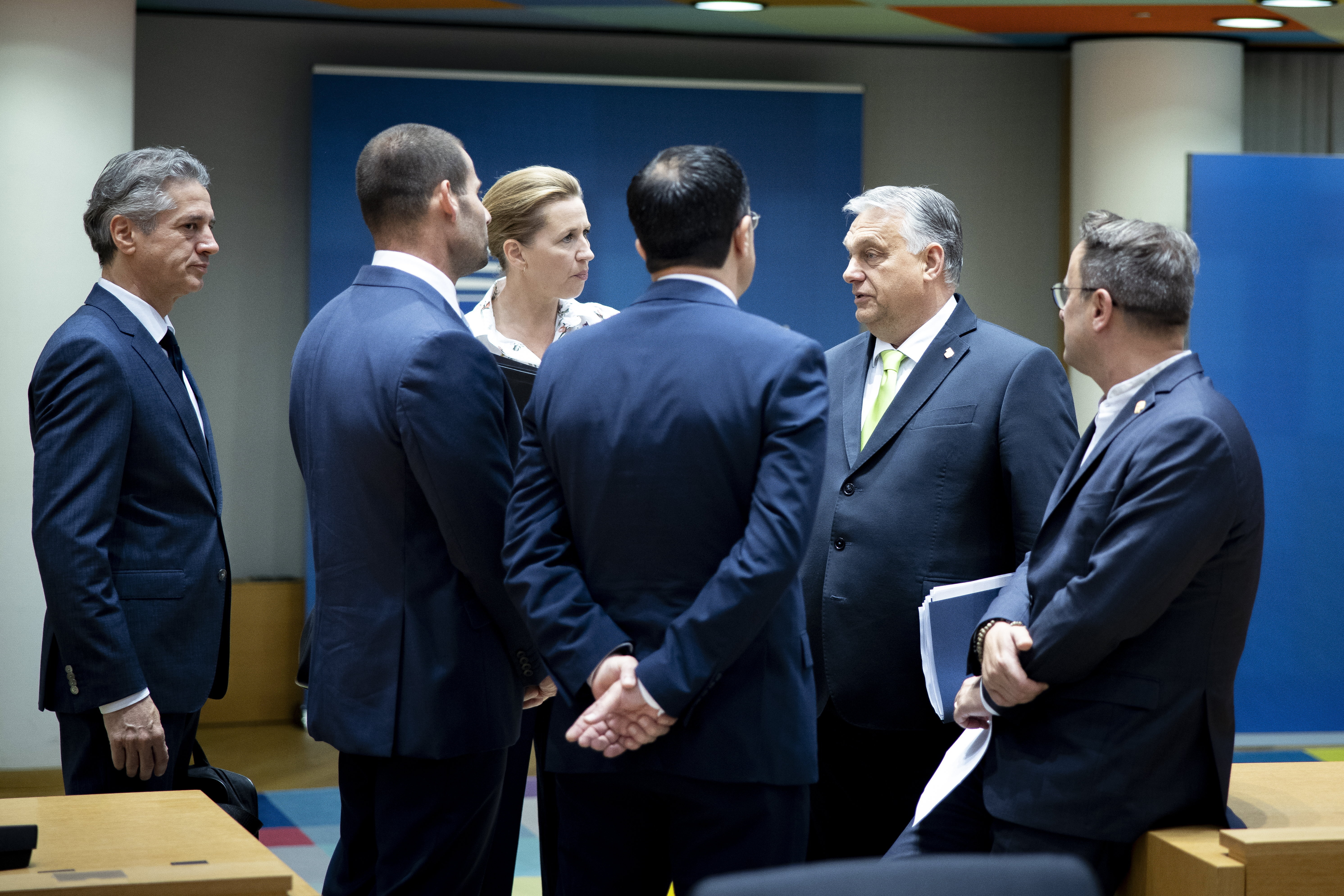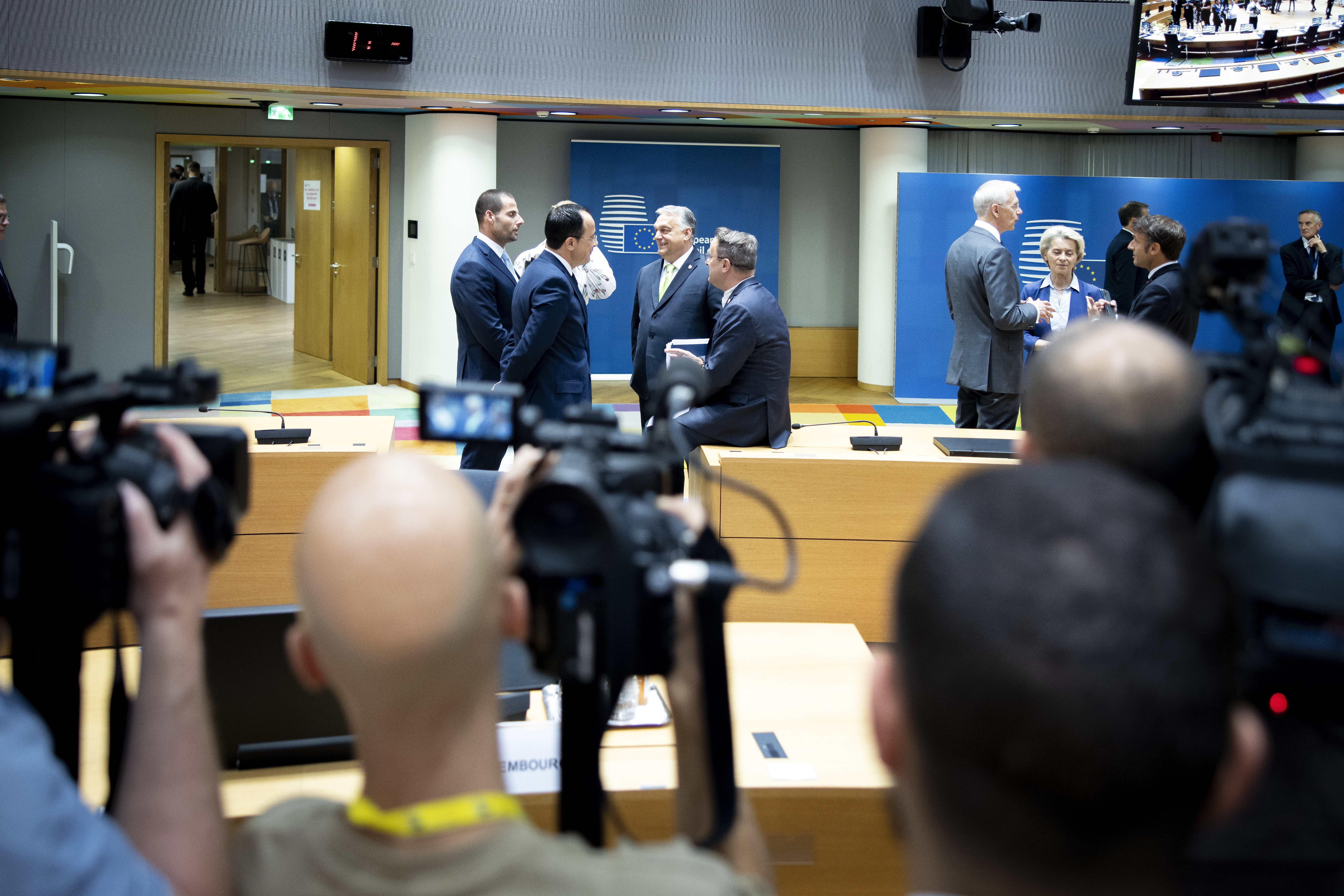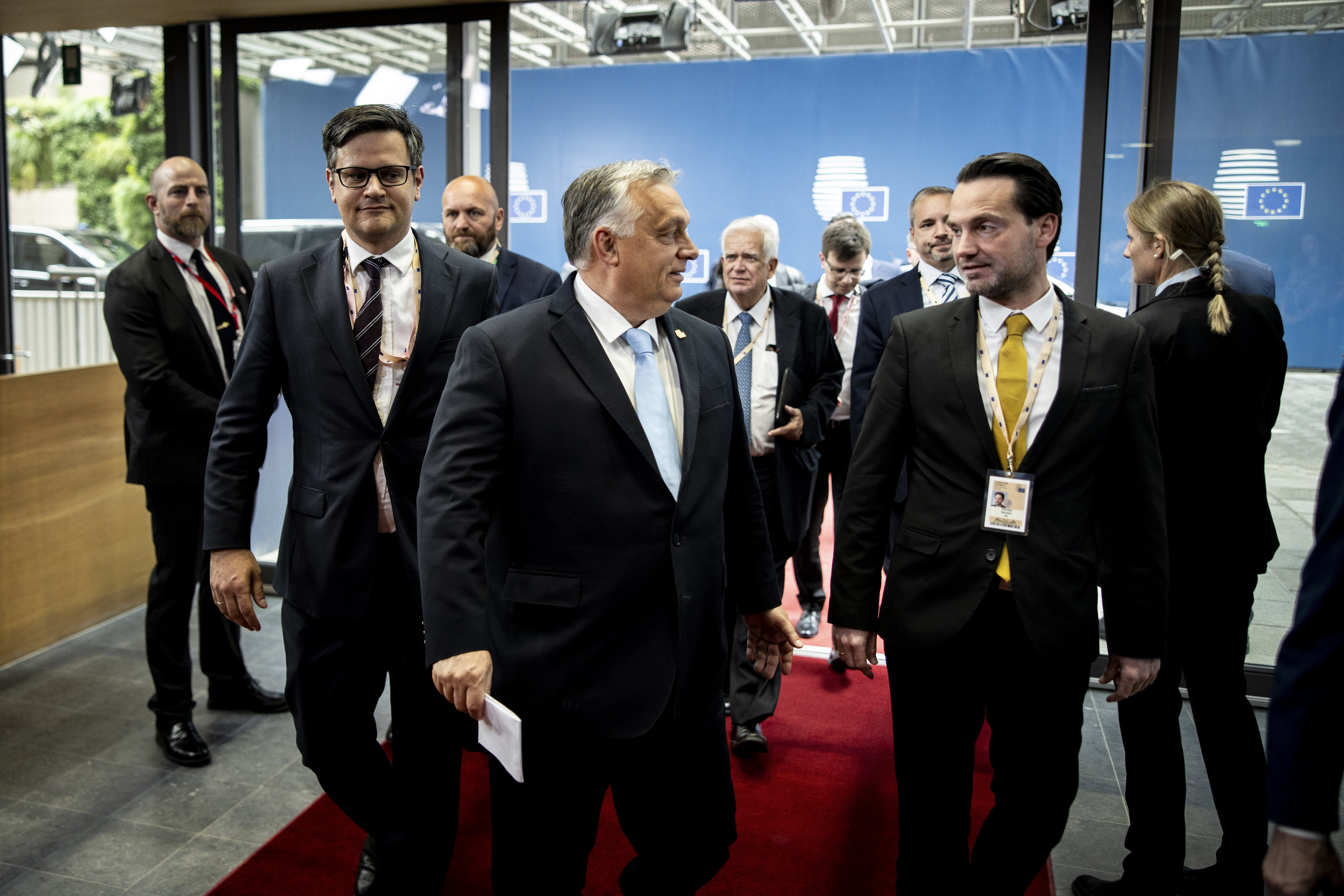 Orbán Viktor miniszterelnök az Európai Unió tagországai állam- és kormányfőinek kétnapos tanácskozására érkezett Brüsszelben 2023. június 29-én. Fotó: Miniszterelnöki Sajtóiroda/Fischer Zoltán