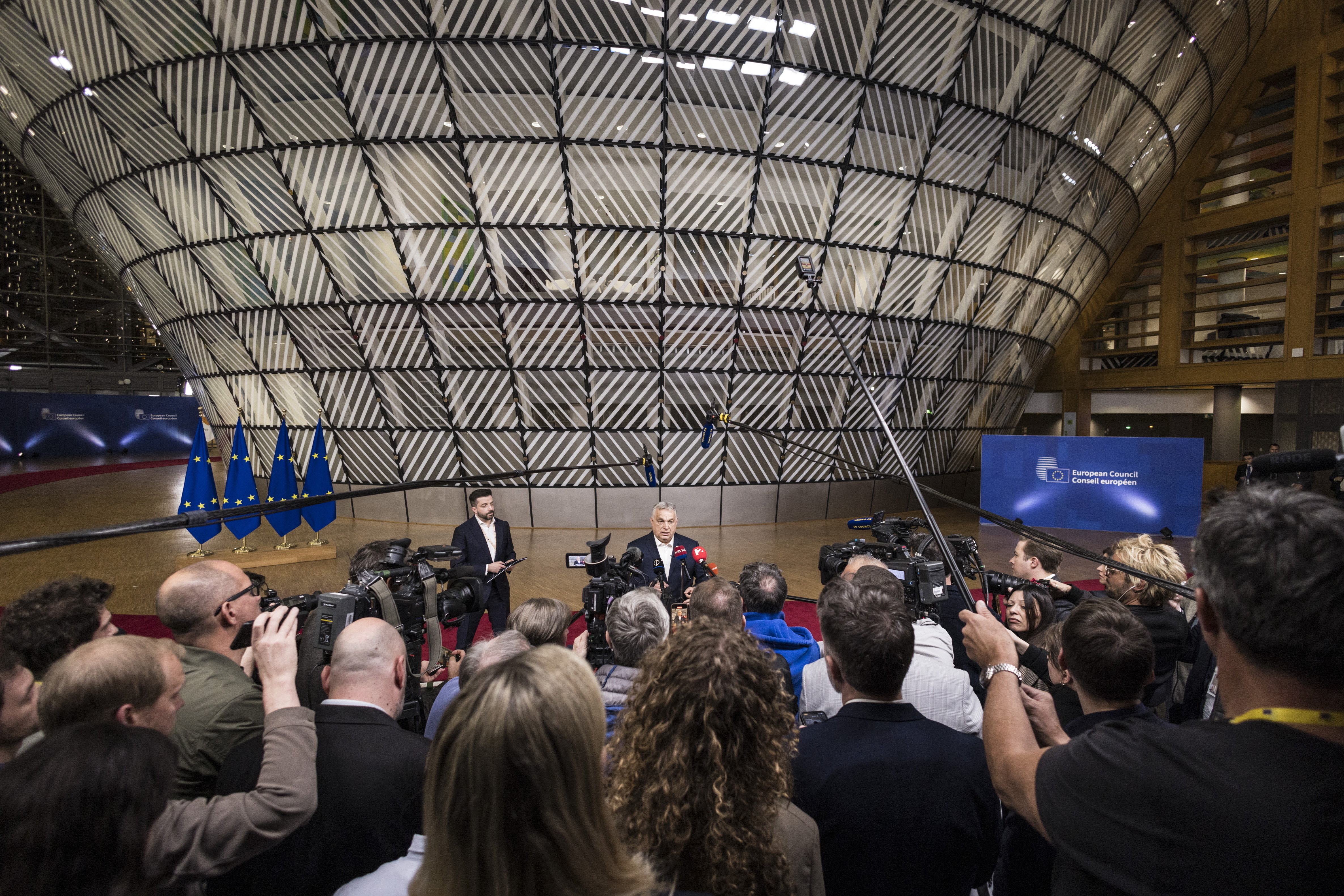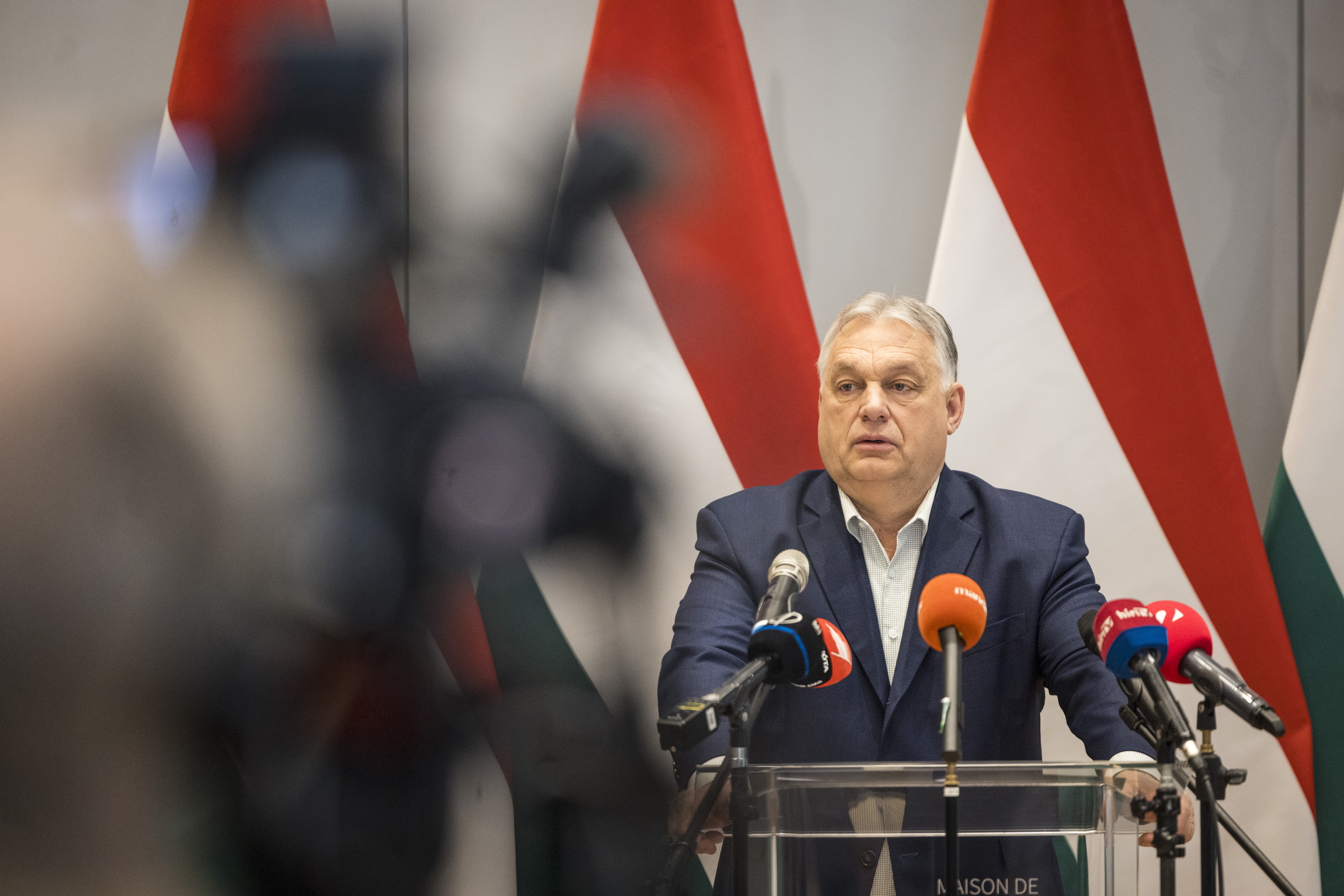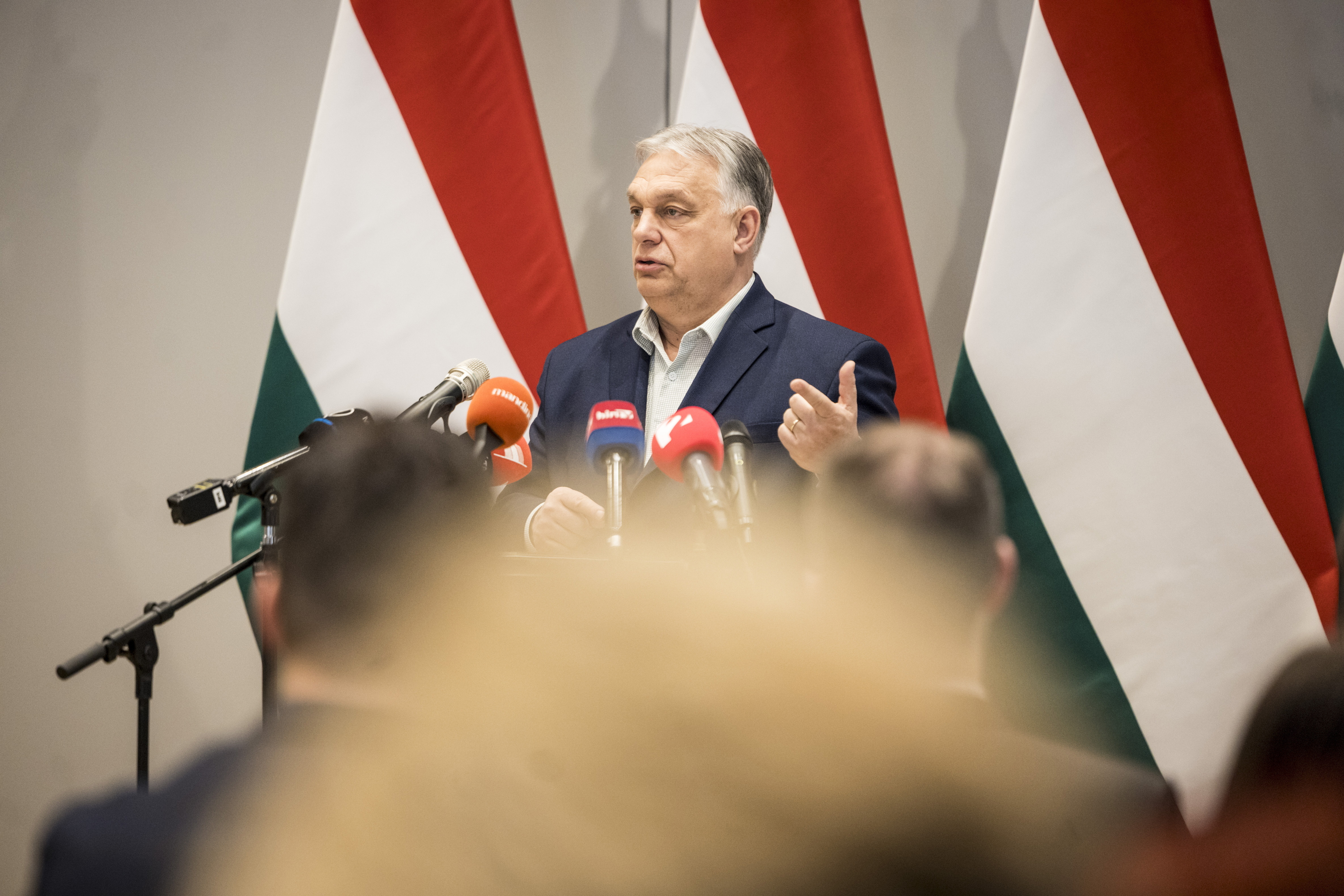 Orbán Viktor miniszterelnök és Donald Trump amerikai elnök a gázai tűzszüneti megállapodás helyszínén, az egyiptomi Sarm es-Sejk nemzetközi konferencia-központjában 2025. október 13-án. Fotó: MTI