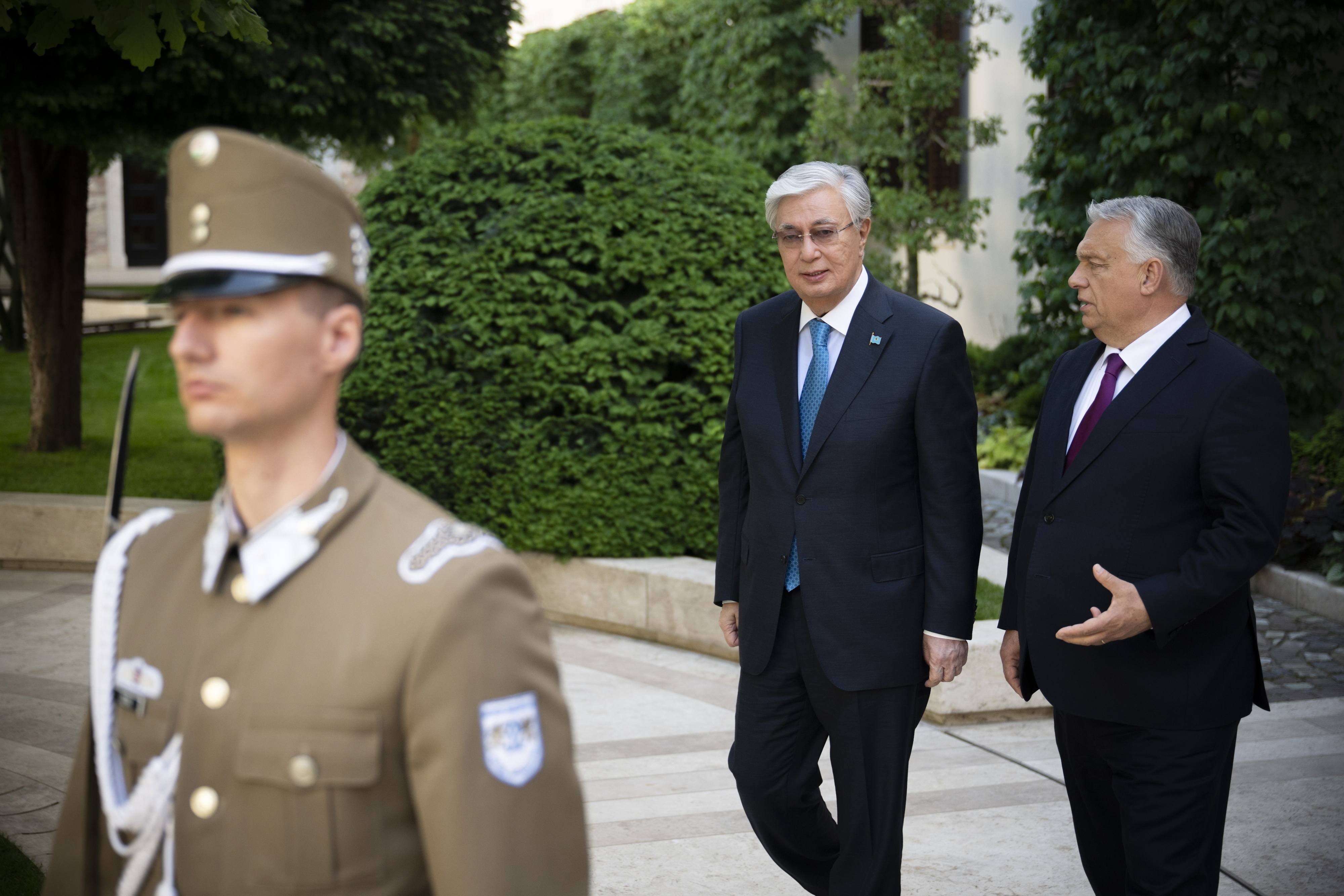 Orbán Viktor miniszterelnök fogadja Kaszim-Zsomart Tokajev kazah elnököt a Karmelita kolostorban 2025. május 20-án. Fotó: MTI